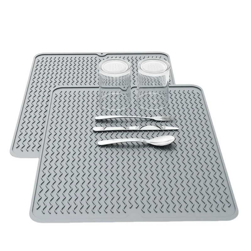 Silikoni-kuivausmatto keittiön pöydälle, liitesarjan kuivauspohja, epäsilmukkeinen vedenojapohja lämpökestävä silikoni-hahmo